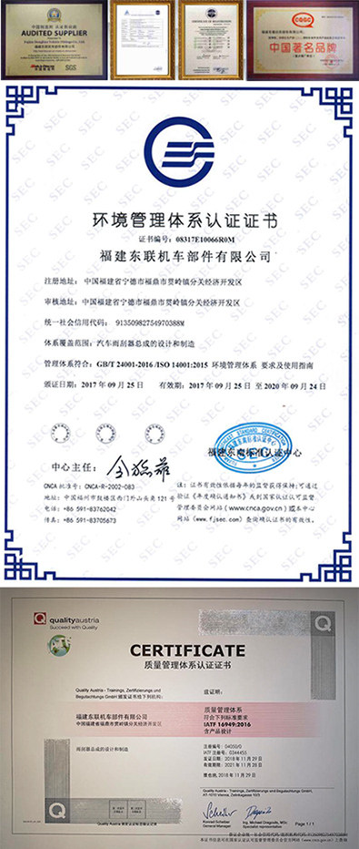 The company passed the ISO9001: 2000 quality system certification in 2003 and passed the TS16949 automotive industry management system certification in 2009.
